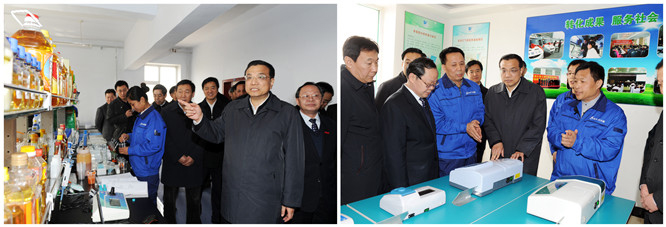 多年來,我們堅持以市場需求為導向,發揮產學研自主創新技術優勢,在國內率先成功研發了專用于食品安全、農藥殘毒、水質與空氣質量快檢領域的系列儀器,為市場安全監管與企業生產過程質量控制以及檢測信息傳遞提供了有效的技術手段;并得到來公司專項考察食品安全監管儀器的李克強總理的直接評價和鼓勵: